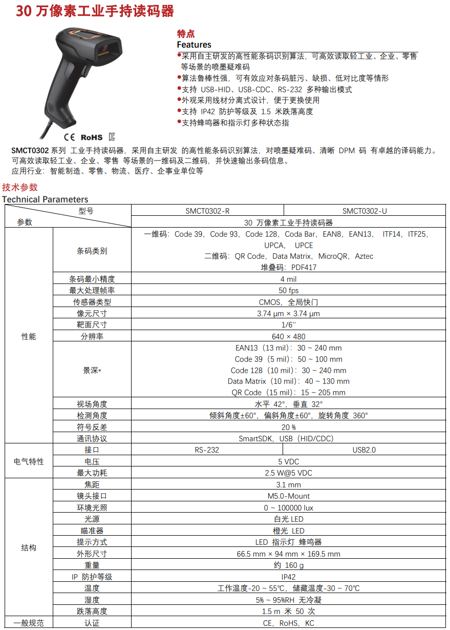 ARC MSCT0302-R MSCT0302-U有線工業手持讀碼器