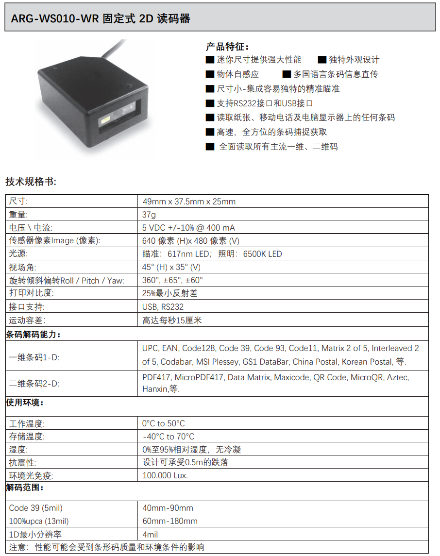 ARG-WS010-WR固定式2D讀碼器