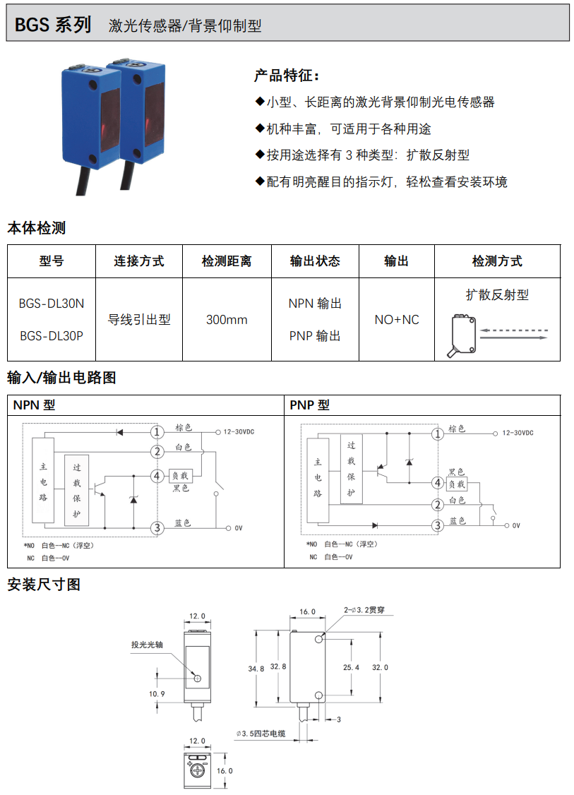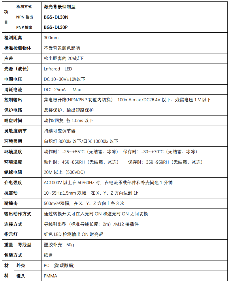 BGS-D30N BGS-D30P 激光傳感器/背景仰制型